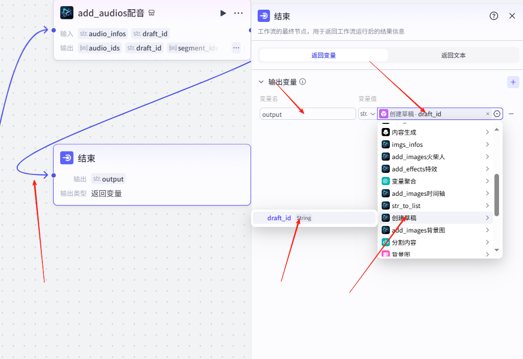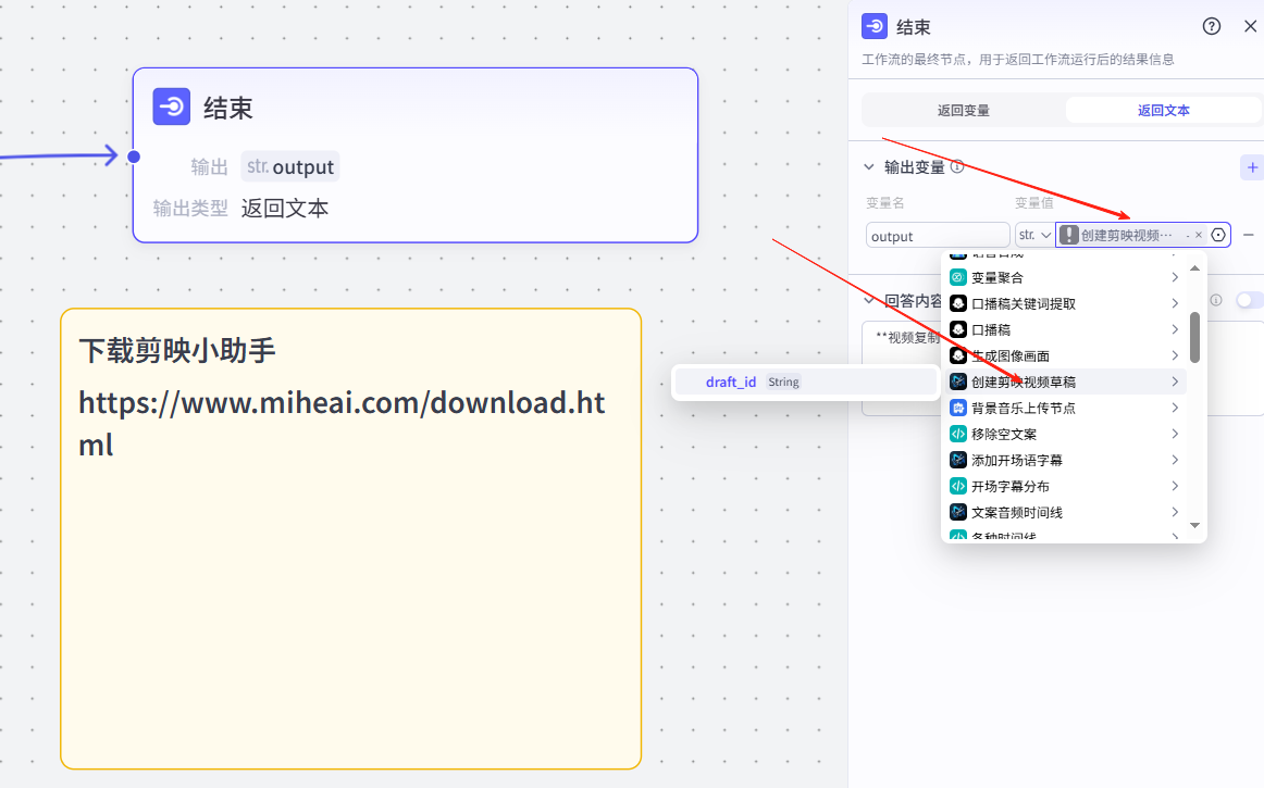 3、结束节点参数